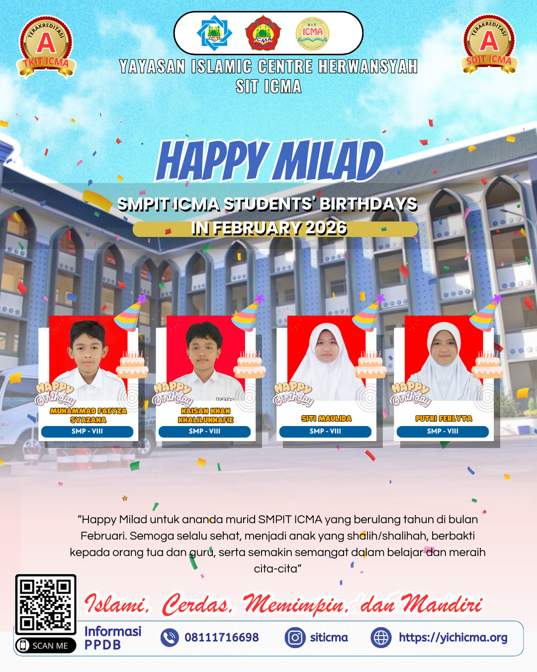 Murid SMPIT ICMA yang berulang tahun di bulan Februari 2026