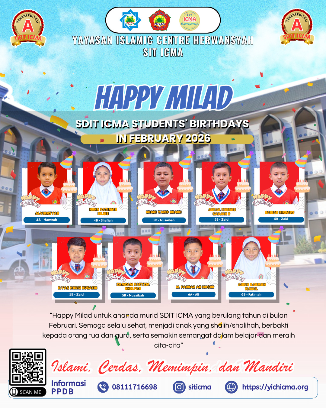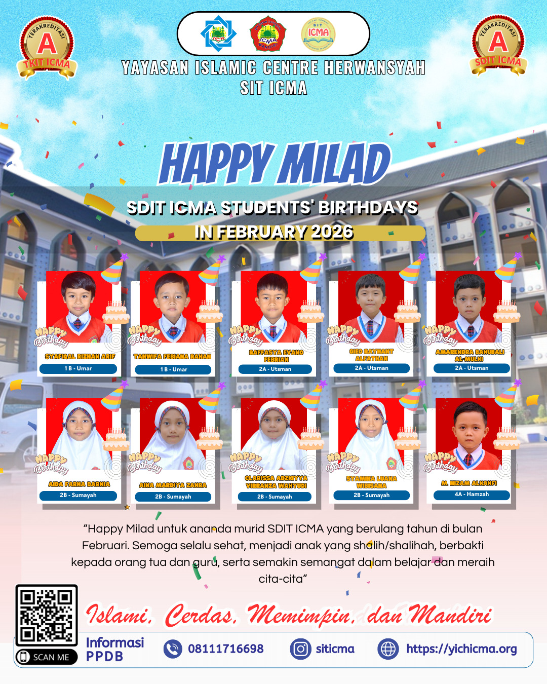 Murid SDIT ICMA yang berulang tahun di bulan Februari 2026